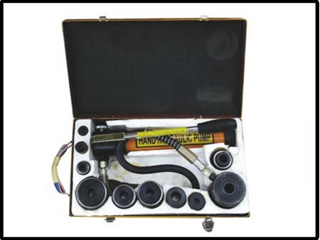 用途及性能:液壓開孔器,是一種能在4mm以下的金屬板 上開孔的先進手動液壓工具,能夠起到一般沖壓設(shè)備所不能 達到的開孔作用。其操作簡便、省力、速度快、加工面平整 光潔,也不受場地,位置限制均可使用,安全可靠。液壓開 孔器結(jié)構(gòu)輕巧、美觀、易攜帶、可供冶金、石油、化工、電 子、電器、船舶、機械等行業(yè)安裝維修電線管道、指示燈、 儀表開關(guān)等的開孔,更適用于已成型的儀表面板底板,開關(guān)箱分線電器盒的壁面開孔之用。